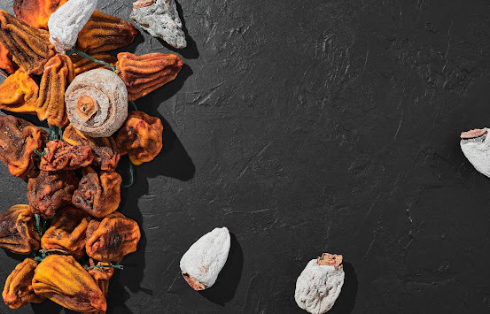 곶감은 감을 말린 것으로 쫀득한 식감이 특징이며, 당도가 높아 단맛이 강합니다.